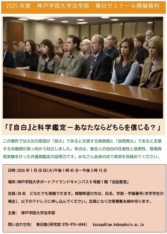 2025年度 法学部・春日ゼミの模擬裁判「『自白』と科学鑑定-あなたならどちらを信じる?」を開催します。